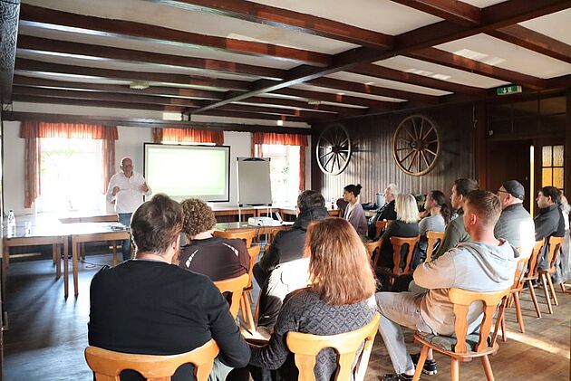 Eine solche stellte der Osnabrücker Fleischer Andreas Witte vor. In Zusammenarbeit mit der Hochschule Osnabrück und Bauernhöfen in max. 40 km Entfernung wolle er seinen Betrieb als „Non-Profit-Firma“ nach dem Modell einer an ökologischen und sozialen Werten orientierten Marktwirtschaft ausrichten. Mit einer 80-kW-Photovoltaikanlage solle der Betrieb energieneutral werden. Mit seinem Konzept eines „wir-marktes“ wolle er Klimakrise, Artensterben und ökonomische Ungleichheit entgegenwirken, erklärte Nils Heitmann. Auch ihm gehe es darum, in einer transparenten Genossenschaft Menschen mehr Einfluss zu bieten. ,,Faire Löhne für Produzenten und günstigere Preise für Kunden entstehen, indem ein paar Stunden im Monat von den Mitgliedern mitgearbeitet oder ein Monatsbeitrag geleistet wird“, so Heitmann.